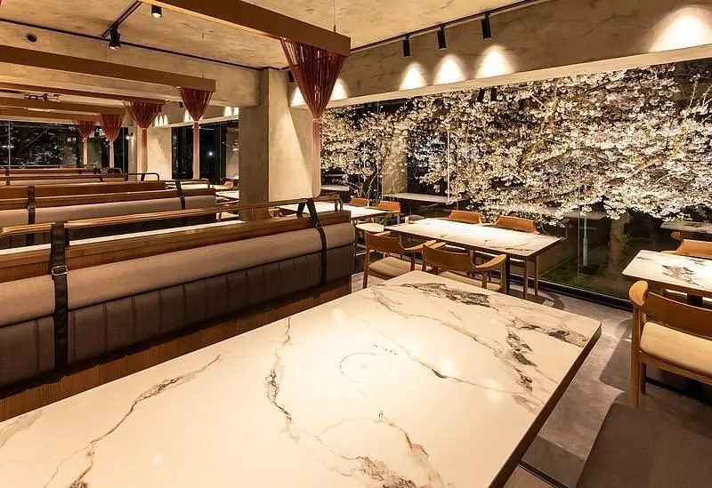 Enjoy a meal at Sukiyaki & Shabu-Shabu Daibokujo Takatsu Store, where you can savor the spring scenery and wagyu beef.
