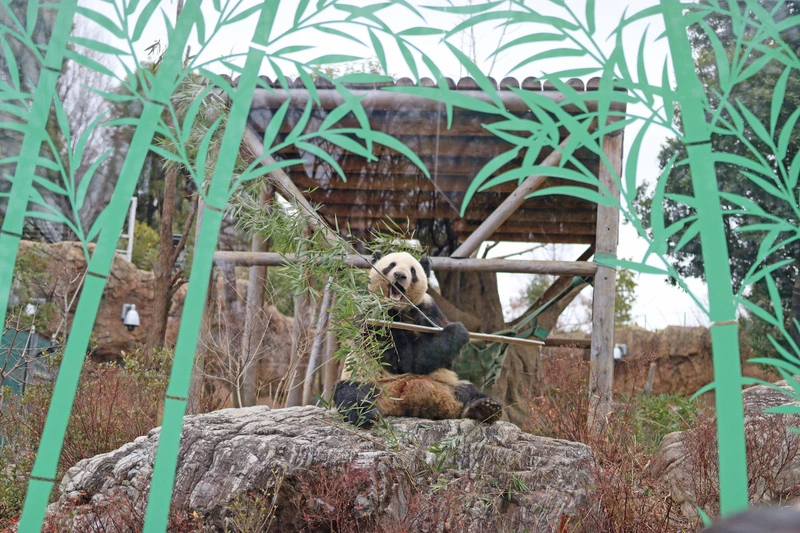 最后,我们前往本次旅程的重点——熊猫森林。 我们看到了可爱、活泼的雌性熊猫“蕾蕾”! 可惜的是, 她的双胞胎哥哥、雄性熊猫“晓晓”,住在另一个室外展区,所以这次我们没能见到他。 在平日, 参观晓晓需要等待20到40分钟,而在周末和节假日则需要等待60到90分钟。()那天,蕾蕾正津津有味地啃着新鲜的竹笋。 每年四五月份,上野动物园都会用从邻近的上野东照宫采摘的竹笋喂养熊猫。 这使得上野公园的动物们也能受益于这片区域的自然美景。(信息截至2025年4月。)